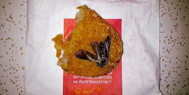 McDonald’s is back in the social media spotlight — and again, for the wrong reasons. Reddit user Link BoyJT reports ordering a hash brown at the fast food restaurant and feeling “something on the bottom,” which turned out to be a deep-fried cockroach. He didn’t eat it (“I probably would have vomited”), but he did show it to the manager: “She marked my receipt so I could get the same meal for free the next time I come in for breakfast. She didn’t really seem all that concerned.”(SOURCE)