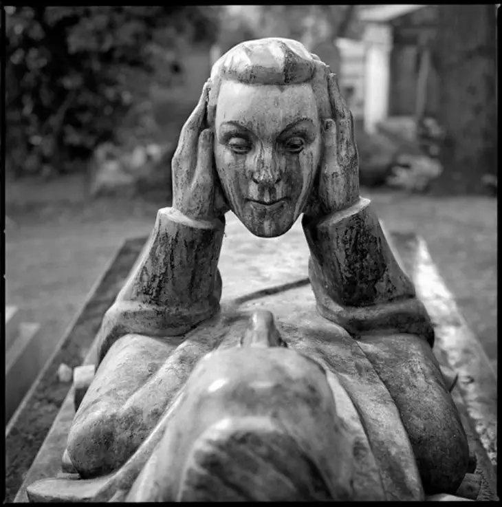 This creepy statue is found in Barcelona’s Poblenou cemetery. It is hidden in the back corner of the cemetery and it is unclear who exactly sculpted it. However, textile manufacturer Josep Llaudet Soler is interred at the site of the statue and the inscription is equally as haunting: