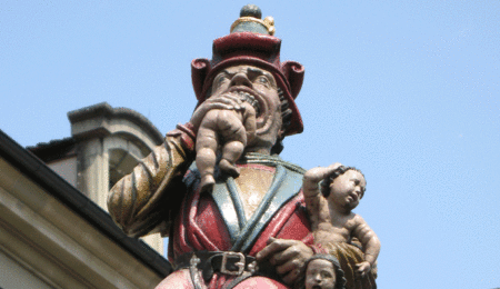 If you ever get the opportunity to visit the city of Bern in Switzerland, there is a statue that you donât want to miss. Child Eater, or as the Swiss call it âKindlifresserâ, shows half of a baby stuffed in the mouth of an ogre, while he is carrying three other infants in his arm. This weird statue was built over 500 years ago, in 1546, and is actually, one of the first fountains built in Bern.