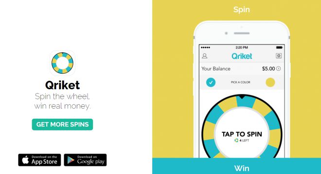 Qriket, a 2011 Toronto, Canada based mobile application is a free app developed for iOS and Android platform through which users can win real money by spinning the “Qriket Wheel”. The spins on Qriket Wheel are obtained by interacting with a variety of digital media including videos, coupons, offers and consumer surveys. By scanning and clicking on two-for-one deals, coupons and 30-second ads from local businesses in the appâs home feed, the user receives what Qriket calls a âwand.â Those wands are then used as a currency, with users exchanging them in return for a spin of a virtual wheel.
