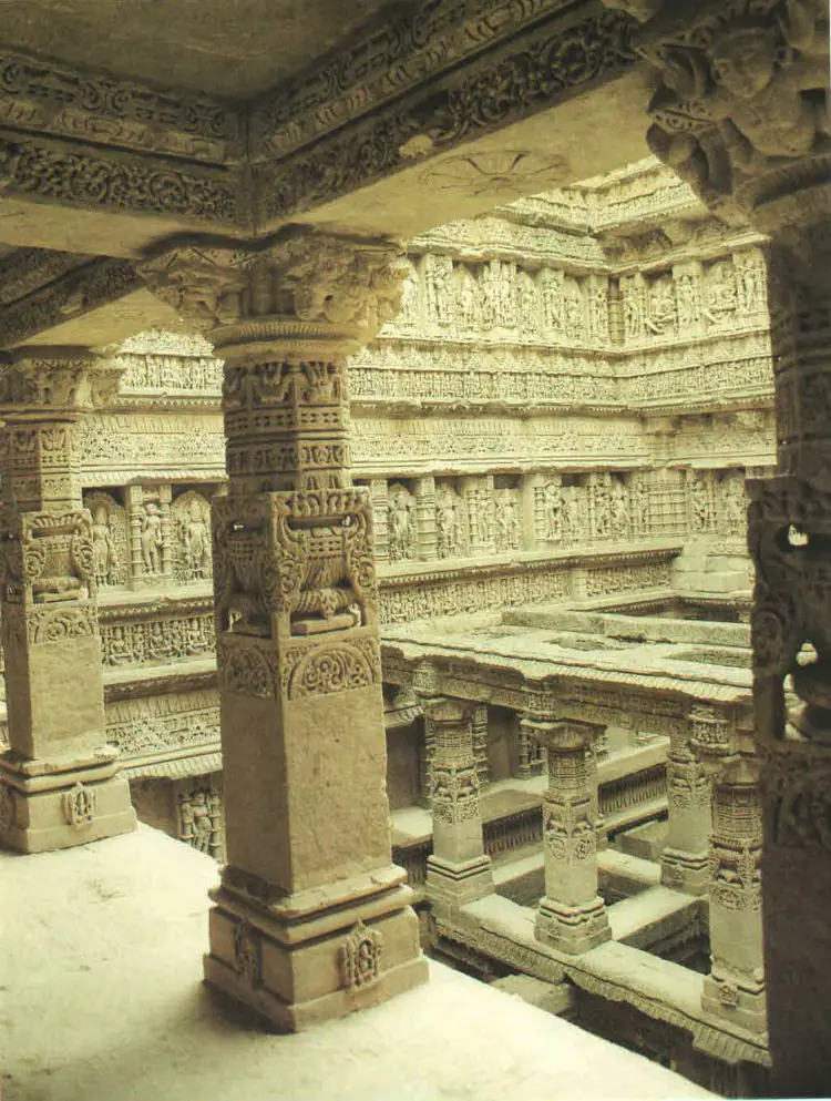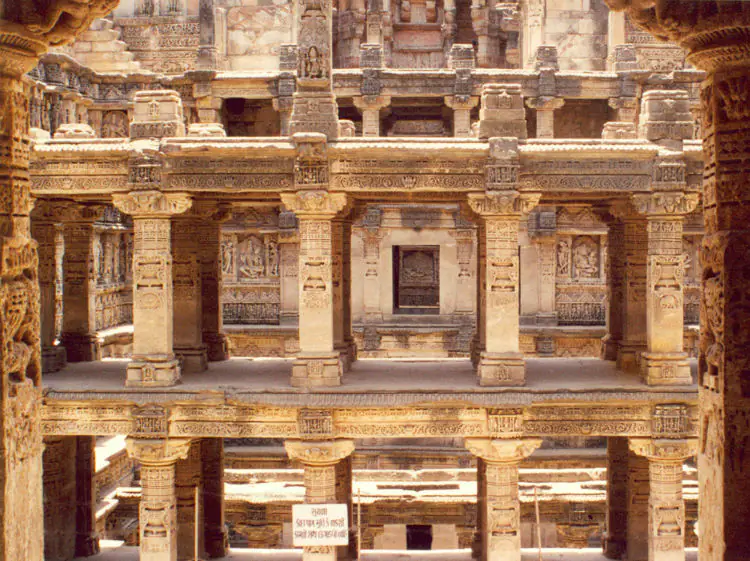 Queens step well is said to be the greatest example of Solanki architecture. The step well was built for a practical and social purpose. It was designed as an inverted temple to uphold the sanctity of water. The step well was 64m long and 20m wide. The shaft of the step well is 27m deep. It had seven stories. The step is oriented in the east-west direction. They begin from ground level. The step well has long stepped corridor heading towards the underground tank.