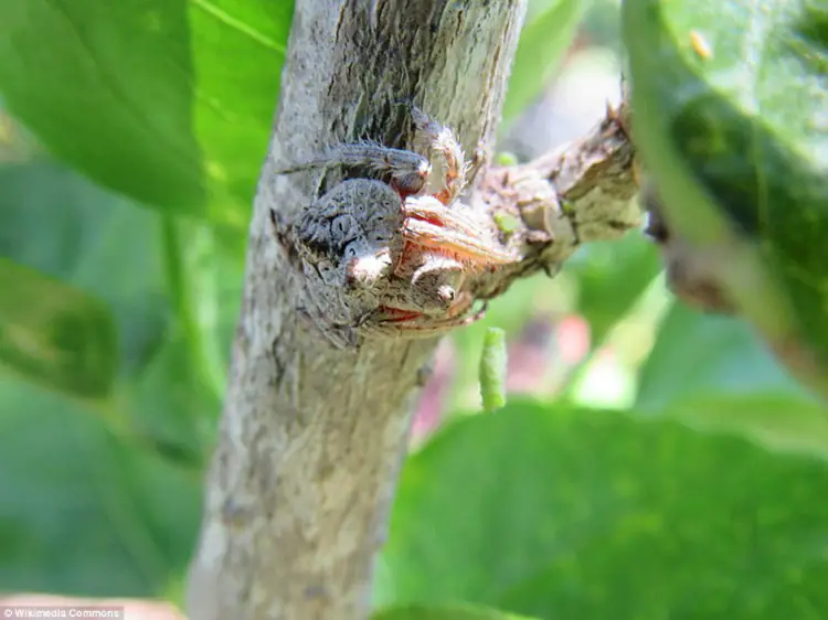 The wrap-around spider builds its large orb-like web at night, but by day blends itself on a twig and ‘vanishes’.Image Source: www.dailymail.co.uk