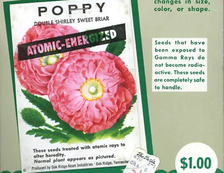 Atomic gardens, also known as “gamma gardens,” were established in laboratories in the United States, Europe, India, Japan, and parts of the former USSR. They were initially designed to test the effects of radiation on plants. The research gradually turned towards using radiation to introduce beneficial mutations for useful characteristics such as increased resilience to adverse weather, or a faster growth rate. In 1959, an atomic activist based in the United Kingdom, Muriel Howorth, established the Atomic Gardening Society. The society employed an early form of crowd-sourcing, in which members received irradiated seeds, planted them in their gardens, and sent reports.