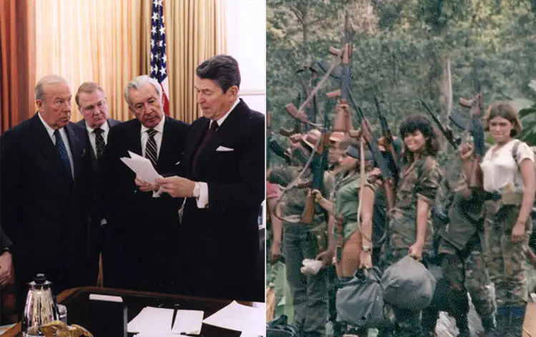 This incident involved the secret sale of weapons to Iran to fund the Contras in Nicaragua to circumvent an arms embargo while negotiating the release of several US hostages held by Hezbollah in Lebanon.Image Source: Ronald Reagan Library, wikipedia