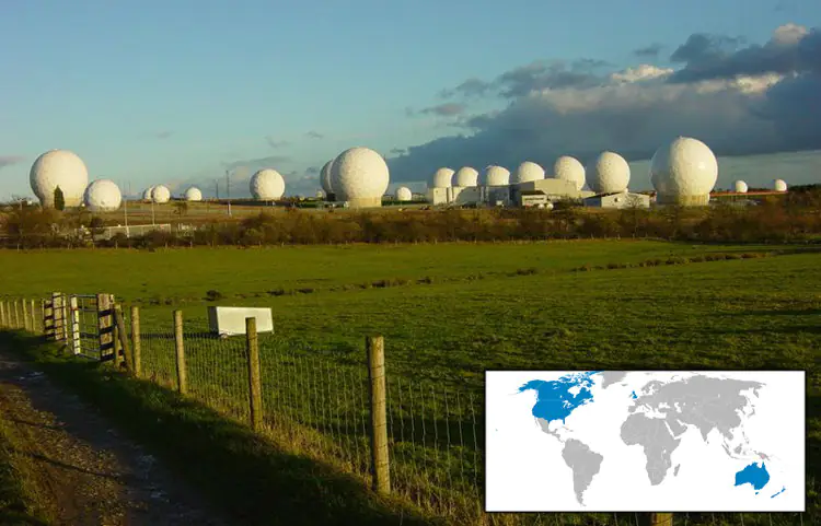 This was a global surveillance program that was established to monitor communications to and from the Soviet Union and now is capable of intercepting private and commercial communications.Image Source: wikipedia