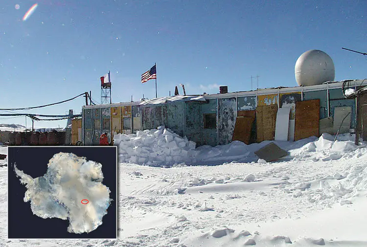 Vostok Station, or âStation Eastâ in Russian, is a Russian research station located in Princess Elizabeth Land and was founded by the Soviet Union in 1957. The station is considered one of the optimal places for studying changes in the Earthâs magnetosphere as it is located near the Geomagnetic Pole. It is also at 3,488 meters (11,444 feet) above sea level and is near the Southern Pole of Inaccessibility making it one of the most isolated research stations on Antarctica. Its location is also a reason for the extremely low temperature recorded on July 21, 1983, on the ground. The data analyzed by NASAâs satellite recorded a temperature of -94.7 °C (-135.8 °F) in August 2010 and -92.9 °C (-135.3 °F) on July 31, 2013, though these might not be considered to be the record for lowest temperatures because they were measured by remote satellites rather than ground-based equipment.
