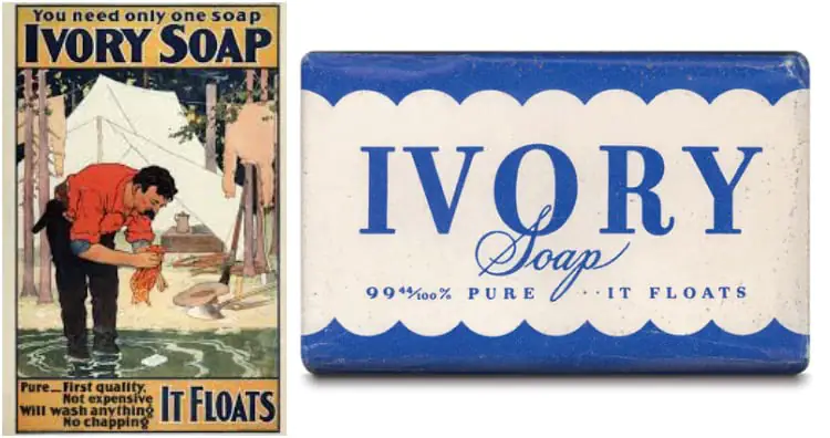 But purity has nothing to do with the ability of the Ivory soaps to float. What happens is that during the production of the soap, measures are taken to ensure that air is inserted into the soap mixture. When the final product is ready, it consists of tiny air bubbles within it. These air bubbles work together to make the soap slightly less dense than water which, in turn, makes the soap float. This also serves another purpose of producing more bubbly lather. Nonetheless, the floating soap advertisement increased sales by a large margin. (1, 2)