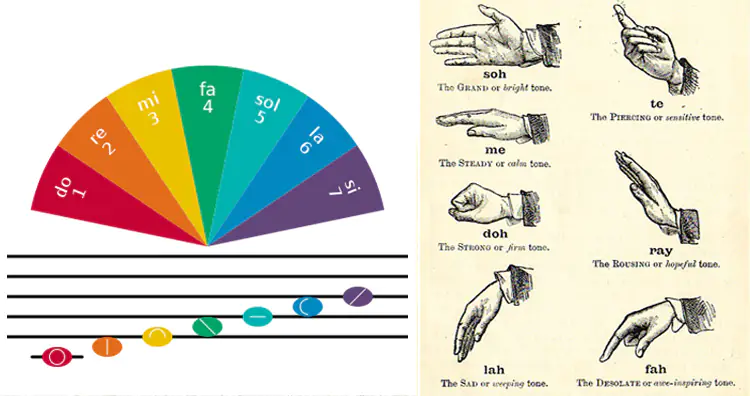 François Sudre constructed a whole new musical language in 1987. It enabled the formation of whole sentences using just the notes Do, Re, Me, Fa, So, La, and Ti. Words are developed using one to five syllables or notes. Each of these is one of only seven basic phonemes which are accented or lengthened. The phonemes can be represented in the form of musical notes, seven colors of the rainbow, defined symbols, or even hand gestures. Hence, a sentence can be sung, painted, or signaled using the colors or through gestures.