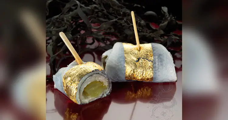 Gold leaf is a gold hammered into thin sheets which are then used in food. It is mostly used to add aesthetic value to the food and has no nutritional value or taste of its own. It was used for centuries in Japan pounded into its green tea. In Europe, tiny gold leaves have been used in liquors since the sixteenth century. In India, gold is sprinkled upon sweets making them an expensive delicacy during festive seasons and special occasions.