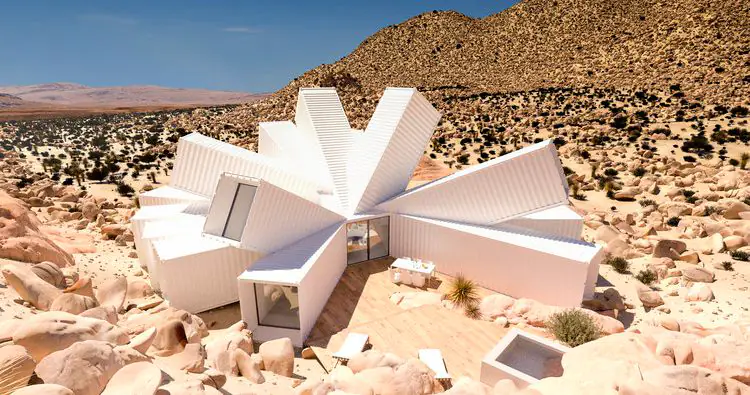 2 Joshua Tree Residence â James Whitaker, a designer, created a starburst-shaped house by combining shipping containers in the most unexpected way forming this house.Image Credit : Whitakerstudio.co.ukImage Credit : Whitakerstudio.co.ukImage Credit : Whitakerstudio.co.uk