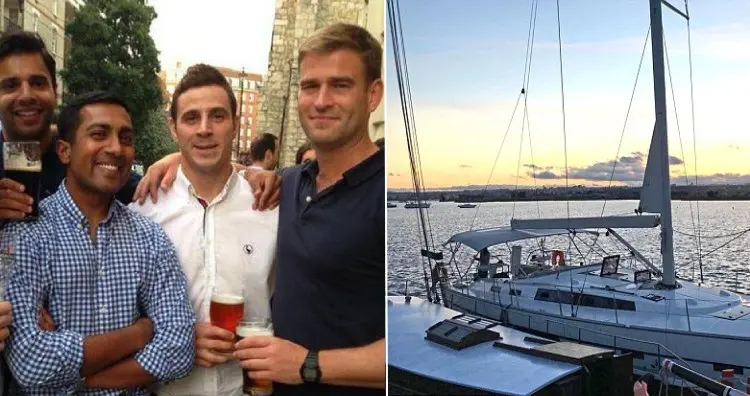 5 On a stag party on a river cruise in Portugal, a 31-year-old best man died when he was thrown overboard during a prank. Nishanthan Gnanathas hit his head on a wire balustrade when he was pushed from the yacht into the Lisbon River Tagus.Nishanthan Gnanathas (Folding hands in the left image), the boat the stag group had chartered. Image Credit: Solarpix.com/dailymail.co.uk, Solarpix.com/dailymail.co.uk