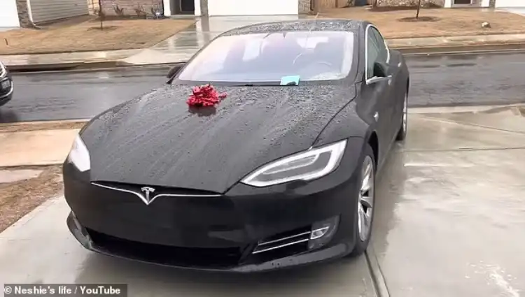 In a TikTok video that has now gathered over 23 million views, the excited mom, Neshie, prepares to reveal the gift to her daughter, Deaisha. The sleek Tesla is seen parked in the driveway, decorated with a red ribbon on the hood and a birthday balloon tied to the window.