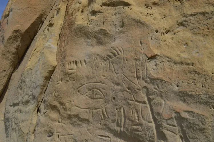 The petroglyphs have animals, symbols, and mysterious handprints.