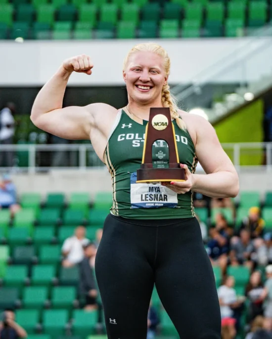 Born in 2002 to WWE icon Brock Lesnar and Nicole McClain, Mya Lesnar has established herself as a standout shot putter. After competing at Alexandria High School, she went on to Arizona State University and later transferred to Colorado State University, where she rose among the top collegiate throwers.