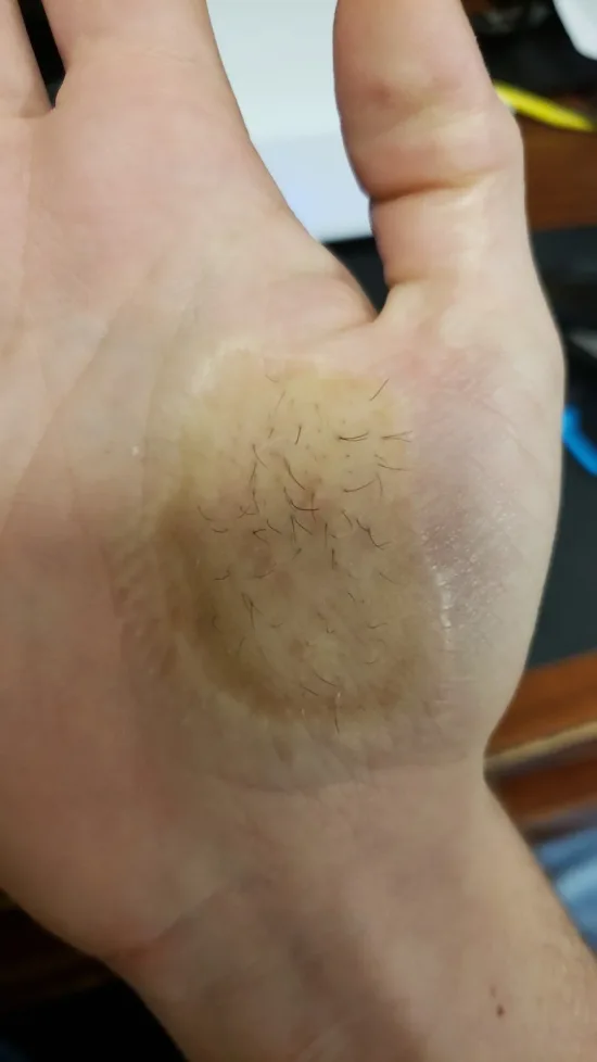 After receiving a skin graft a few years ago, this man noticed something strangeâhair began growing on the palm of his hand. It turns out the grafted skin came from a hair-bearing part of his body, and it brought the follicles along with it.