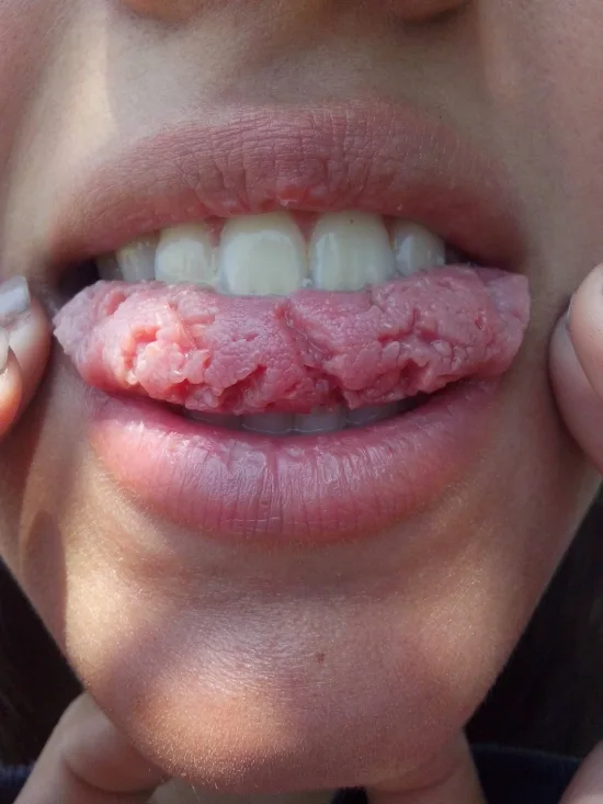 Fissured tongue is a harmless but uncommon condition where deep grooves develop along the tongueâs surface. This user has itâand avoids pineapple, which can sting in those cracks. It may look startling, but itâs usually nothing to worry about.
