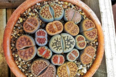 Lithops, also known as living stones or pebble plants, is a genus of succulent plants that evolved to look like stones. Native to southern Africa, the plants' unique appearance helps them to blend in with the surrounding rocks, and that's how they avoid being eaten.