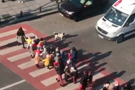 In Georgia, a stray dog named Kursha has taken it upon himself to help young preschool children to safely cross the road. He shows up for his self-appointed job every day, and even barks furiously at cars that ignore the crossing.