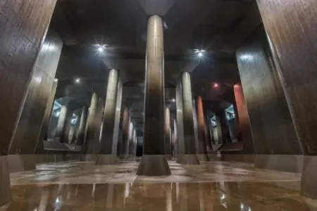 Underneath Tokyo, there are five enormous cylindrical shafts that fill with water during floods to protect the city from flood damage. This system, known as the G-Cans Project, prevents extensive flood damage.