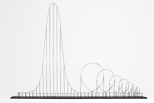 The Euthanasia Coaster is a conceptual art piece envisioning a steel roller coaster designed with the intent of ending the lives of its passengers. Created in 2010 by Julijonas Urbonas, who was a PhD candidate at the Royal College of Art in London at the time, the concept also includes a scale model. The design features a towering structure reaching a height of 510 meters (1,670 feet or 0.317 mile), requiring two minutes for a 24-passenger train to ascend. Following this climb, a 500-meter (1,600 feet) drop accelerates the train to 360 kilometers per hour (220 mph), nearly its maximum speed, before leveling off and entering the first of seven slightly clothoid inversions.