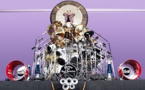 The largest drum set is comprised of 340 pieces, is owned by Dr Mark Temperato (USA) and was counted in Lakeville, New York, USA. Dr Mark Temperato is a member of the band called Jesus the Soul Solution. He transports the drum set in a custom-built trailer.