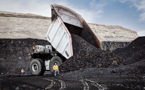 The largest mining truck body by volume is the Westech T282C Flow Control Body which has a volume of 470.4 cubic metres at a coal density of 0.86 tons/m3. It was designed and manufactured by WESTECH (USA) an Austin Engineering LTD company and was presented and measured at the North Antelope Rochelle Mine, Wyoming, USA.