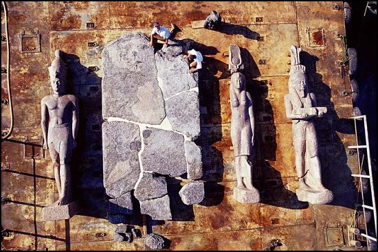 On the discovery of this magnificent city, the archaeologists had first faced the mammoth task of reassembling massive stone fragments on the seabed before they could haul them to the surface. Twelve years on, their fabulous finds have been exposed to public view for the first time after more than a millennium spent beneath the silt and water of Aboukir Bay, 20 miles northeast of Alexandria.
