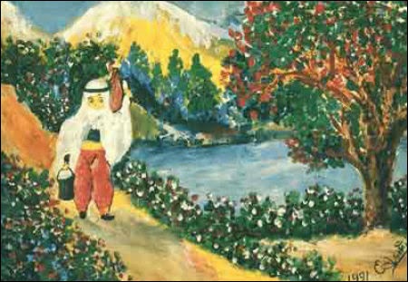 Have you ever tried to do everyday things with your eyes closed just to see what it would be like to be blind? Do things like trying to get from your front door to the kitchen or try and write out your name all with closed eyes? Tough isn’t it? Well, their is a man named Esref Armagan, a 53 year old artist who lives in Turkey. You could say he and his family are not very well off. That didn’t stand in the way of Esref. Esref is a self taught individual.He started learning to write out certain characters, letters, then was introduced to oil base paints! Finally, he now has a way to express himself on canvas for all to see and appreciate.