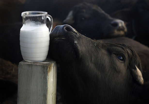 A clotted cream, spiced rum liqueur, dark rum, and whole cream mixture known as “buffalo milk” does the trick here. It is more alcohol than milk though.
