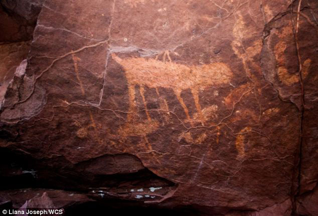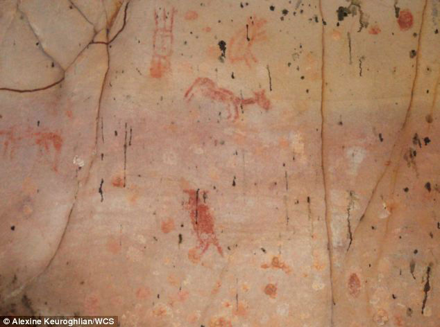 The peccaries are pig like animals that travel long distances in herds and environmentally indicate healthy forests. They are vulnerable to activities such as hunting and deforestation by humans and are currently disappearing from their former range of large swaths from the Southern parts of Mexico to northern Argentina. The team followed radio collared signals from the white lipped peccaries and their herd trails. This led them to the sandstone formations with caves that contained the geometric figures and cave drawings.
