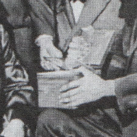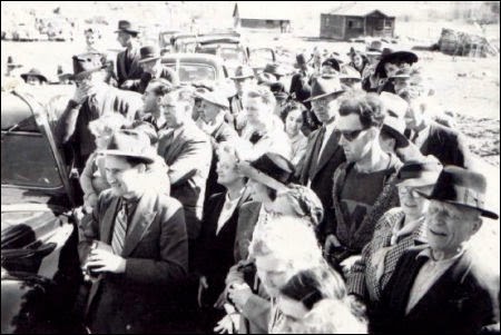 This photo is courtesy of the Virtual Museum of Canada Website. It was taken in the early 1940s during South Fork Bridge reopening in Gold Bridge, Canada. The event attracted a large attendance but someone in the photo did not belong. He was wearing modern sunglasses, a stamped t-shirt with a great looking sweater and holding a portable camera. Over the years, he has come to be known as the ‘time travelling hipster’.
