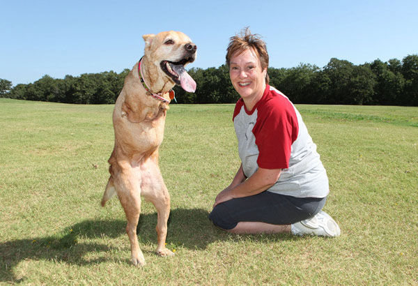 Faith, is an eleven year old Labrador-chow cross who is a favorite at hospitals and army bases. She is a sight to watch as she ‘marches’ around using her hind legs while clothed in a military jacket.