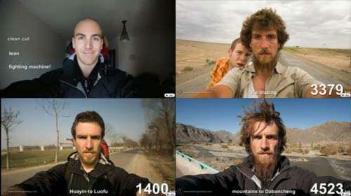 Christopher Rehage decided to take a photo of himself each day when he started his walk in the fall of 2007. His plan was to walk from Beijing, China to his home in Germany- a distance of five thousand miles. He didn’t make it to go that far, but managed to walk for nearly 3000 miles and grow an impressive beard.