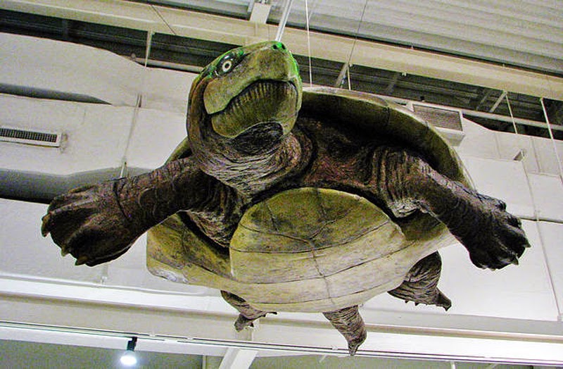 The name Carbonemys means “carbon turtle”. It was a carnivorous the size of a Volkswagen. Its head was bigger than a football and its beak razor sharp which made it easy to slice through other animals with ease.(source)