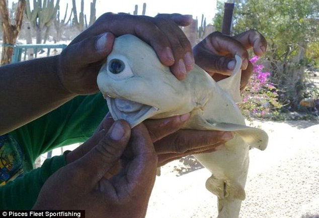 Rare Single-eyed Albino Shark Found By Mexican fishermen.