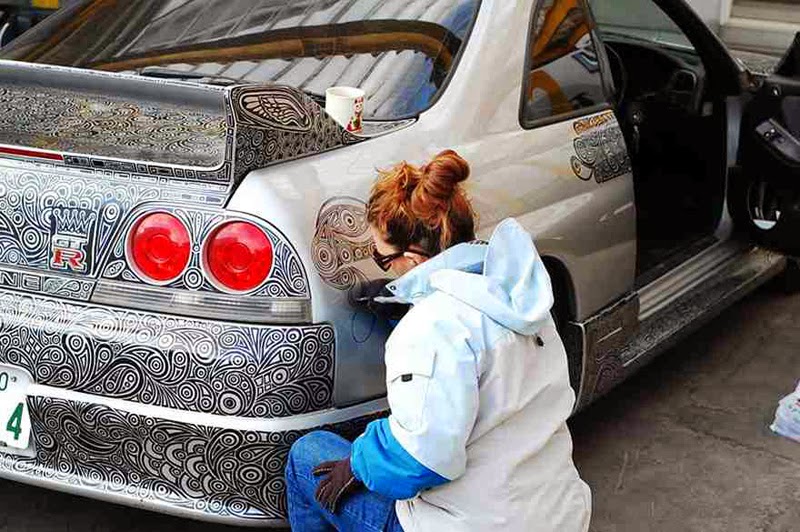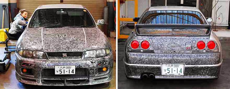 In Photos: Artistic Woman Doodled On This Nissan Skyline And Transformed It Into A Masterpiece.