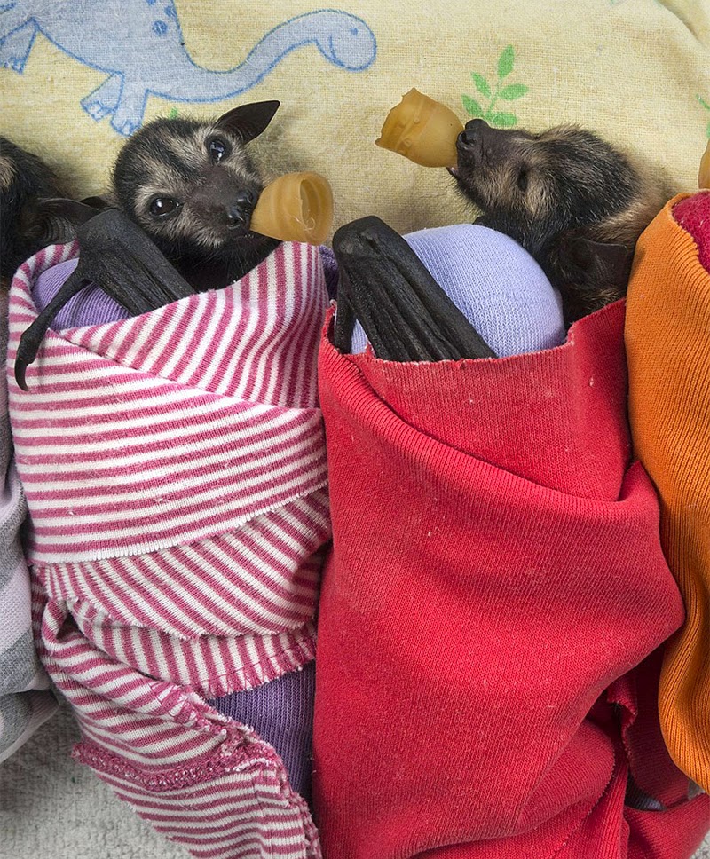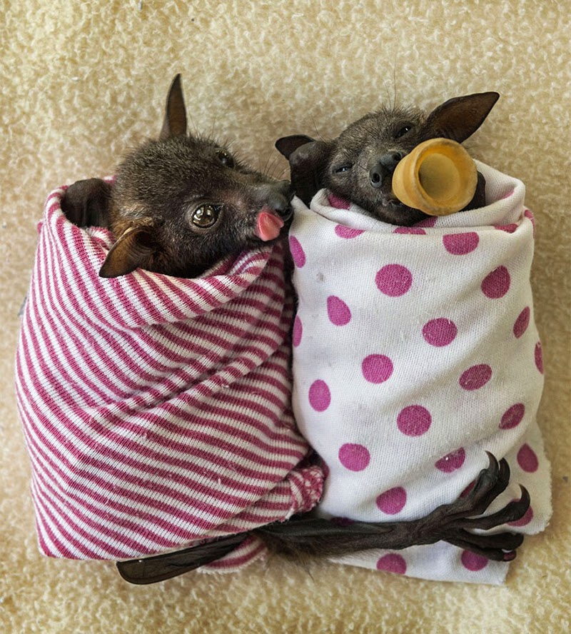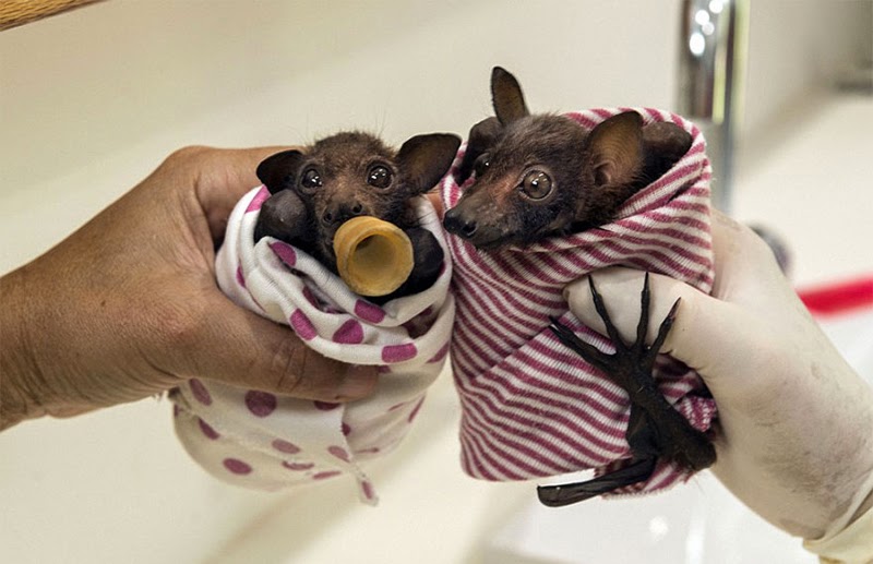 We normally view bats as vampiric and terrifying creatures but seeing these tiny baby bats being fed from bottles and wrapped in blankets, made us go batty on them. These abandoned baby bats at the Tolga Bat Hospital, Atherton, Australia, proof that these creatures can be as adorable as any puppy or kitten. The fruit bats are brought in when afflicted by the fatal tick paralysis- a disease that orphans over 300 baby bats each year. The baby bats are also brought in when their mothers become too sick to feed them or when their mothers die, mostly from the same disease. Â