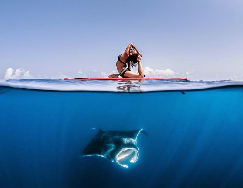 The photographers took test shots during the eight months she spent in Boulder, Colorado training, swimming and doing lots of breathing exercises. Then after floating around the Caribbean with the animals, they got the perfect shot. Smith’s perfect shot was a still of Ippoliti engaged peacefully in a yoga pose next to the manta ray. “There are others that might be more technically perfect,” he said “but that one captures this giant looping magnificent creature that most people are kind of afraid of.”