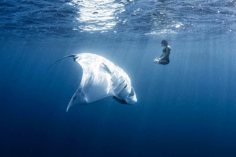 The underwater rendezvous was meant to showcase the existence of an inter species connection between animals and man. She hopes this will help many people understand that its worth protecting and preserving this incredible animals. Manta rays are being harvested globally by organized fishing programs, and in unsustainable numbers. The fishermen want the gill rakers that the rays use to gather food and this has led to a booming gill rakers market in China due to their medicinal values.No proof however, is available to show that the gill rakers can cure any ailment.