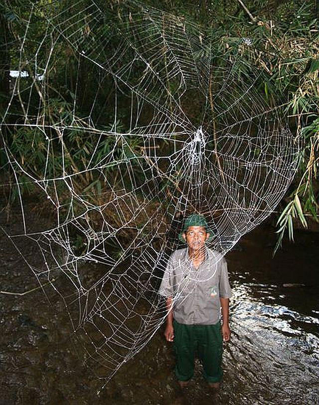 5 The Darwinâs bark spider spins the largest webs in the world, with a silk that’s tougher than any known biological substance. Image source: imgur.com