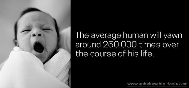 1 The average human yawns around 250,000 times, over the course of his life.Â
