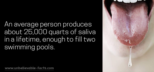 4 The average human being produces about 25,000 quarts of saliva during a lifetime. That’s enough to fill two swimming pools. Image source: chemistry.about.com