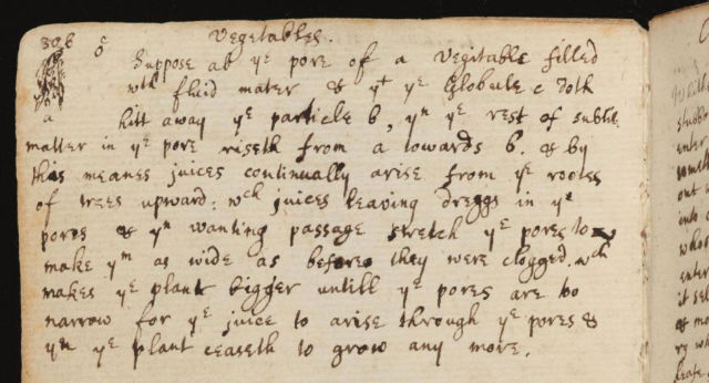 The process of water moving from the roots to the leaves (transpiration) was first widely proposed in 1895 and similar process was penned by Isaac Newton during his undergraduate years in 1660’s. This has been assessed by Professor David Beerling (University of Sheffield), and published in the journal “Nature Plantsâ. Beerling thinks that Newton’s use of the word “pores” might actually refer to water-conducting tissues inside stems, rather than the underside of leaves. Beerling writes “We have no idea how long Newton spent thinking about the workings of plants or what prompted these thoughts”. (source)