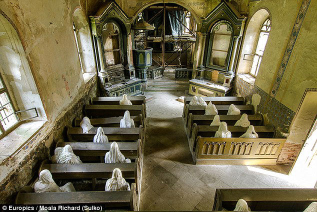 Then, artist Jakub Hadrava was commissioned to create artwork in order to draw visitors to the 14th-century church in a remote Czech village. It wasn’t going to be an easy task, but Hadrava nailed it: he installed ghosts in the church.