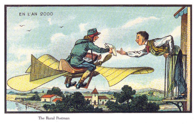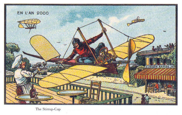 In the years 1899, 1900, 1901, and 1910, French artists were asked to express in pictures what they think the year 2000 would look like. The picture series, which consisted of at least 87 pictures, were first produced as part of paper cards enclosed in cigar or cigarette cases, and later released as postcards. The first series was produced for the 1900 World Exhibition in Paris. Collectively, these pictures are called En L’An 2000 (literally, ‘In The Year 2000’).