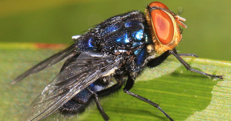 Pregnant, female screwworm flies seek out open wounds on the skin of a warm-blooded animal to lay eggs. Within a day, the eggs hatch into tiny larvae that feed on tissue and bodily fluids.(source)