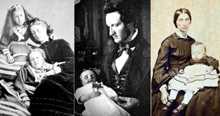 Photographers used different devices to hold the deceased to make them look alive. As the photo process was long, subjects would have to hold their deceased loved ones for extended periods of time to achieve the perfect shot. Pupils were commonly painted onto the print to make the bodies look more alive.(source)