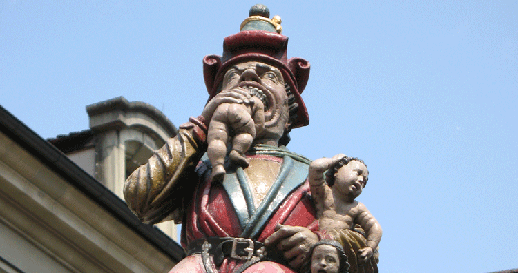 If you ever get the opportunity to visit the city of Bern in Switzerland, there is a statue that you donât want to miss. Child Eater, or as the Swiss call it âKindlifresserâ, shows half of a baby stuffed in the mouth of an ogre, while he is carrying three other infants in his arm. This weird statue was built over 500 years ago, in 1546, and is actually, one of the first fountains built in Bern.