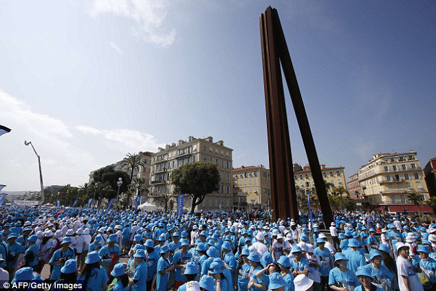 From there they travelled in over 140 buses to Nice, where they were booked into top four and five star hotels located in Cannes and Monaco, occupying a total of 4760 rooms. From there they went to the Côte d’Azur, or more popularly known as the French Riviera in English, where they formed a large group holding blue flags with the quote âTiens Dream is Nice in the Côte d’Azurâ in both English and Chinese alternatively. They stretched along the Promenade des Anglais, otherwise pronounced as The English Promenade with the central crowd wearing blue caps and t-shirts bordered by people wearing white caps and t-shirts. Guinness world record officials were present at the major event which was accompanied with a grand Marine, land and air show in celebration of the friendly ties between China and France. This great event took place on May 8,2015