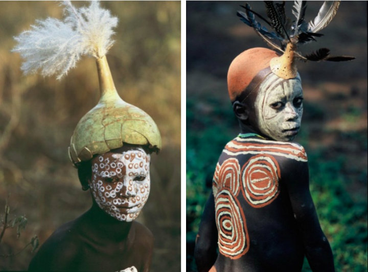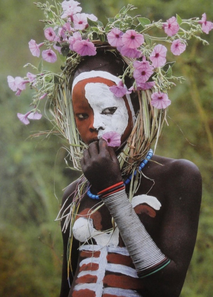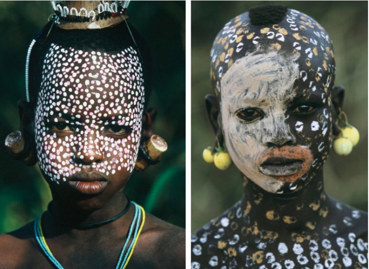 These nomadic people do not have any permanent structures to express their creativity and therefore use their body as a free form of art expression with their body as the canvas and mineral pigments from powdered volcanic rock or clay and natural dyes as their color palette.